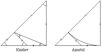 From the discussions of 1955-1956 it appears that Kiselev's Geometry has been judged to follow too closely Euclid's Elements. As one example, it was pointed out that, by introducing the parallel postulate early on, the book by Nikitin and Fetisov managed to simplify the treatment of the Exterior Angle Theorem compared to its treatment in Kiselev's Geometry. There is no doubt that the wind of change in geometry education that began blowing in Europe at the end of the 19th century, has reached and influenced the Russian policy makers. In this particular instance of the Exterior Angle Theorem, it is usually cited as a great insight of Euclid's who postponed using the Fifth Postulate until I.29. He accordingly split the theorem into two parts, the first of which did not require parallel lines. The true appreciation of Euclid's sequence came with the 19th century development of various geometries, Absolute Geometry in particular. To a teacher a theorem of such significance provides a rich background for historical and philosophical discussion that most students are capable of appreciating.
