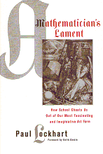 P. LockhartThe best recommendation I can make for a book is to say that every one should own it and read it. Paul Lockhart's A Mathematician's Lament is one such book that I unreservedly recommend to teachers, math educators, state and federal senators and congressmen, parents and even children. The author decries on the state of math education, focusing on school mathematics. His point of departure is the idea that mathematics is the purest form of art and should be taught as such. What he proposes is not another reform but a revamping of the whole of the educational system. Realizing that the system is part and parcel of the cultural atmosphere, he soberly laments the impossibility of achieving his goal. However, Paul's view is only partially utopian. A professional mathematician, he left a university professorship to devote himself to teaching K-12 level students. He taught at St.Ann's School in Brooklyn, NY since 2000. In the book he not only offers his passionate critique of the state of education but also shares his experience as a teacher and outlines his view of what teaching of mathematics should be. More ... | |