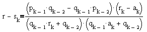 | (5) | r = (pk-1rk + pk-2)/(qk-1rk + qk-2), k > 1. |