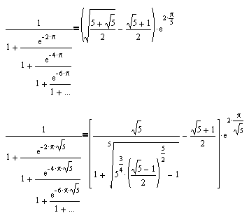 The next two examples are due to S. Ramanujan, one of the greatest mathematical geniuses. Being a poor uneducated clerk, in 1913 Ramanujan sent a letter to