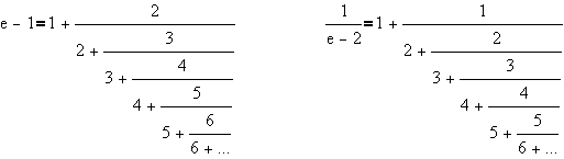 r-1 = [0;1,2,1,2,...]. Letr1 = [1;2,1,2,...]. Then (r+1) = [2;r1] = 2·r1. On the other hand,(r-1) = [0; r1] = 1/r1. Thus we get(r+1)(r-1) = 2. Finally,r = √3. All of the above fractions are periodic in the sense we apply to decimal fractions. Le comte J. L. Lagrange (1736-1813) proved that this is a characteristic property of roots of quadratic polynomials.
