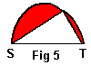 Since the area of the two red regions did not change but the area of the triangle (Fig 5) grew, the whole area between the new curve SPT and the line ST has increased. This shows that unless the curve is a semicircle we can always increase the area in question by moving points S and T. This proves Lemma 2 and with it Statement 1.