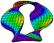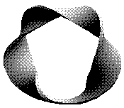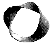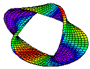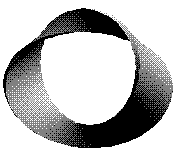 To obtain a Möbius strip, start with a strip of paper. Twist one end 180o (half turn) and glue the ends together (the avi file takes 267264 bytes). For comparison, if you glue the ends without twisting the result would look like a cylinder or a ring depending on the width of the strip. Try cutting the strip along the middle line. People unacquainted with Topology seldom guess correctly what would be the outcome. It's also interesting to cut the strip 1/3 of the way to one edge. Try it.